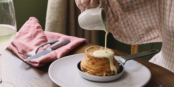 Our twice-baked cheese soufflé is an iconic dish here at The Old Crown – light, airy, and so utterly delicious.
